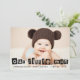 Announce the birth of your little one with this customisable birth announcement. it features black cut-out typography and a moustache pattern. Personalise by adding your details. This photo birth announcement is perfect for baby boys. Matching items are available.