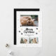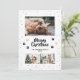 Cute black photo Meowy Christmas card featuring three photos, snow and paw prints on the front and a snowy background at the back. Easily personalize this cute photo Christmas card with your photos, family name and the year.