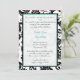 Victorian Damask Swirl Light Aqua Blue White & Black Damask Wedding Invitations
