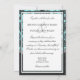 Black Damask Blue Wedding Invitations--- match the RSVP cards found at the bottom of the page. Each invite feature a black damask chandelier print at the top over a blue/pool blue shade. The top and bottom are divided by an ornamental, decorative band with black & silver swirls. The bottom features a printed luxury pillow design for added flair. The back features the same design with a white text box that allows the graphics to peek through. These blue chandier/black damask wedding invitations are set to high quality basic card stock; however, you can change the stock to linen, felt (embossed), recycled, and several metallic shades if you would like under number 2 (choose your style, size & paper type) below the orange add to cart button. A list of the additional costs for a fancier card stock are displayed also under that option. Each invitation comes with a fitted white envelope.