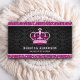 Black Damask Faux Hot Pink Glitter Royal Crown Business Card