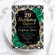 20th Birthday Party Invitation. Elegant floral emerald green design with faux glitter gold and roses. Features black and white damask pattern and script font. Perfect for a stylish womens bday celebration. Can be customized for any age! Printed Zazzle invitations or instant download digital printable template.