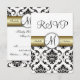 Black Damask Gold Wedding RSVP Card