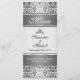 Black damask pattern on a silver gradient background Wedding Menu Rack card. The matching items are shown below:
