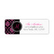 Cute design with black vintage damask pattern with PRINTED pink glitter photo effect and monogram initial. Elke Clarke © for DamaskGallery on Zazzle. Use this fun return address label with your monogram initial, name and address details for your wedding invitations, wedding thank you cards or bridal shower invitations and more. For other glitter colours contact store owner.