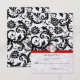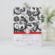 Black Damask Swirls Red Trim Wedding RSVP Card