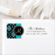 Cute design with black vintage damask pattern with PRINTED teal or aqua blue glitter effect and monogram initial. Use this fun Return Address Labels with your monogram initial, name and address details for your Wedding Invitations, wedding thank you cards or bridal shower invitations and more. For other glitter colours contact store owner. Copyright Elke Clarke.
