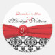 Black Damask with Poppy Red 1.5" Round Sticker