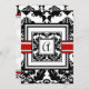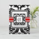 Black Damask On White Red Trim Save The Date shown on Linen Stationery - Black Damask On White with Red Trim Wedding Invitation -you choose paper style and color - as well as - font style and color. If you would like a glossy finish (glossy on front side only) order the basic, linen or metallic papers - for a matte finish order recycled, felt or speckled.