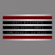 Customisable return address labels with bold black and dark red horizontal stripes and a faux silver gradient background.