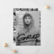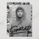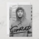 Modern graduation announcement featuring the graduate's vertical photo with "Grad" in black handwritten lettering with a dash below. Personalize the trendy photo graduation announcement by adding the graduate's name, school name, and graduation year. The announcement reverses to display a pattern of black and white dashed brushstrokes.