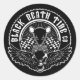 Fictional business logo for "Black Death Tire Co." Winged skull and rat with chequered flags in a round seal. Available in b/w and black/orange.