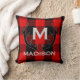 Black Deer Antlers Monogram Red Buffalo Check Cushion