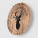 Rustic wood cabin house wall clock personalised with family name and established year. The deer head silhouette clock is perfect for your summer cottage cabin decor.