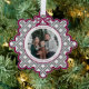 Send warm holiday wishes in style with this preppy Christmas ornament featuring a classic black diamond pattern with charming coquette bow in burgundy, that beautifully decorates your family photo.