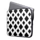 A bold, geometric pattern of large and small black diamonds on a white background. The white forms a lattice which separates the diamond shapes.