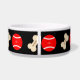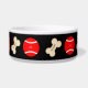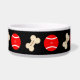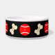 A pet bowl with hand drawings of bones and balls. The background, images and text can be personalised. Original artwork by W.B.