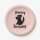 Black Dog Happy Birthday Pink Paper Plate