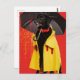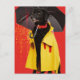 A black dog in a yellow raincoat with red paint splatter AI generated art