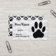 Black cartoon dog paw print custom business card. Dog paw print pattern in the back. For personal and business uses like vet clinics, pet sitting and groomers.