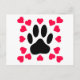 Black Dog Paw Print With Heart Shapes Postcard