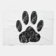 Black Dog Paw Print With White Flourishes Tea Towel