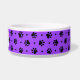 Black dog paw prints and hearts pattern with a custom purple background colour on dog food and water bowls. This pattern can be easily enlarged or reduced to your preference and pick your favourite background colour. Personalise this dish with your dog's name printed on the white dog bone accented with a red heart. Cute gift idea for any dog parent!