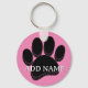Black Dog Pawprint Hand Drawn Custom Name Pink Key Ring
