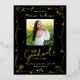 Black Doodles Graduation Save Date Photo Real Gold Foil Invitation Postcard