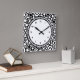 Black Dots & Circles Grid + your backgr. & text Square Wall Clock