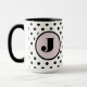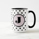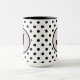 This mug features a pattern of black dots on a white background with a framed custom monogram on a pale pink background. Click Personalise this Template to easily personalise the monogram and further customise the colours, font and add additional text, if desired.