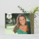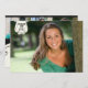This graduation party announcement has a trendy black and white mini polkadots pattern in the background on the back. At the top on the backside, you can personalise this with three of your photographs. At the bottom, you can customise the text to be an invite/announcement of a graduation ceremony or a party to celebrate the graduation. On the front, you can add another photograph of the graduate. On the top left, there is a stylish black swirl badge with Class of 2012 written. You can customise the year to be whatever year you are graduating. This graduation announcement has a total of 4 photos that you can add, 3 on the back and 1 on the front.