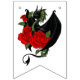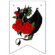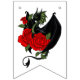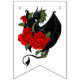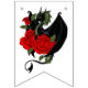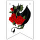 A small black dragon is nestled among vibrant red roses set against a clean white background.  Perfect for those who love mythical charm with a classic twist.