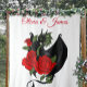A small black dragon is nestled among vibrant red roses set against a clean white background. Perfect for those who love mythical charm with a classic twist.