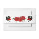 A small black dragon is nestled among vibrant red roses set against a clean white background. Perfect for those who love mythical charm with a classic twist.