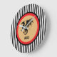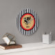This medieval inspired clock features a black dragon with your initials in black, accented with red and black. The design is set against a background of black and white stripes, and the clock's hand is gray. The gold is a printed color only and does actually contain foil or metal. Harken back to the Middle Ages with this cool looking clock. Make sure to type your intials in the Personalize section.