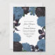 Black & Dusty Blue Photo/QR Code Floral Wedding Invitation