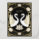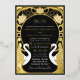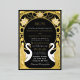 Black Elegant Art Nouveau Swans Wedding Invitation