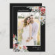 Celebrate this festive season with our Black Elegant Christmas Photo Collage Holiday Card. Hand-painted with love, these cards showcase an exquisite blend of cream flowers, red berries, and green botanicals, all set against a choice of red, dark green, or black backgrounds. Perfect for those who appreciate artisanal beauty with a rustic boho chic twist. Share warmth, joy, and style this Christmas with just the right dash of elegance!