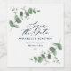 Black elegant modern eucalyptus save the date chic wine label