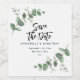 Black elegant modern eucalyptus save the date chic wine label