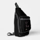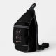 A minimal black sling bag with a pink arrow on the bottom where above that you can personalise it with a logo, name or letter or just keep as is with the phrase "Girl Boss". Modern girly theme.