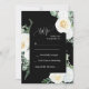 Black Elegant White Roses Wedding RSVP Card