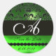 BLACK EMERALD GREEN DAMASK MONOGRAM,Save the Date Classic Round Sticker