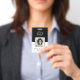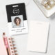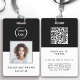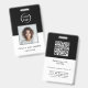 A professional company logo ID Badge with employee photo, name and title on the front along with your company logo. The back of the badge has a template for your company website QR code and additional company information as desired. All of the text may be edited as you prefer. The popular black and white design is attractive and professional.