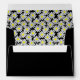 A black envelope lined with a white daisy pattern. Flowers for your messages!