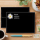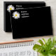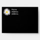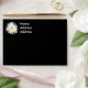 This sophisticated black envelope has a white daisy in the upper left corner.
