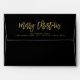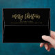 These elegant black envelopes feature faux gold and black stripes on the inside, and the words "Merry Christmas" in faux gold modern typography along with your return address on the back flap.