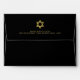 These elegant black Bat Mitzvah envelopes feature faux gold and black stripes on the inside, and a faux gold look Star of David along with your return address on the back flap.