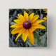 This close-up of a black-eyed susan flower with a bee perched on it is featured here on a square full-bleed photo button pin. In the background in the top right corner you can see a couple more black-eyed susans, or Rudbeckia hirta as they’re officially called, all surrounded by green leaves and stems. These buttons are available in multiple round sizes as well. For matching keychains, stickers, magnets, and more, check out my store.